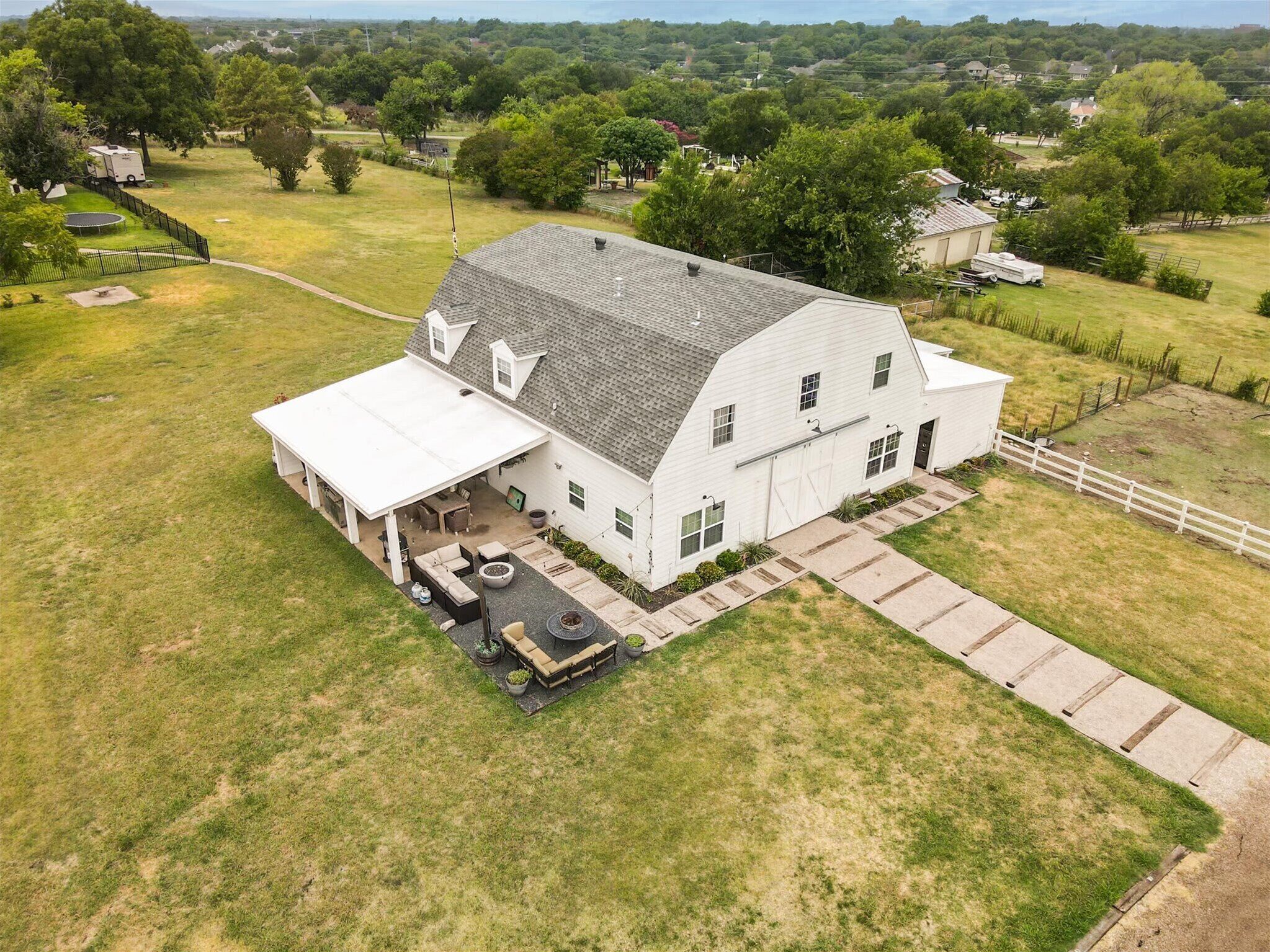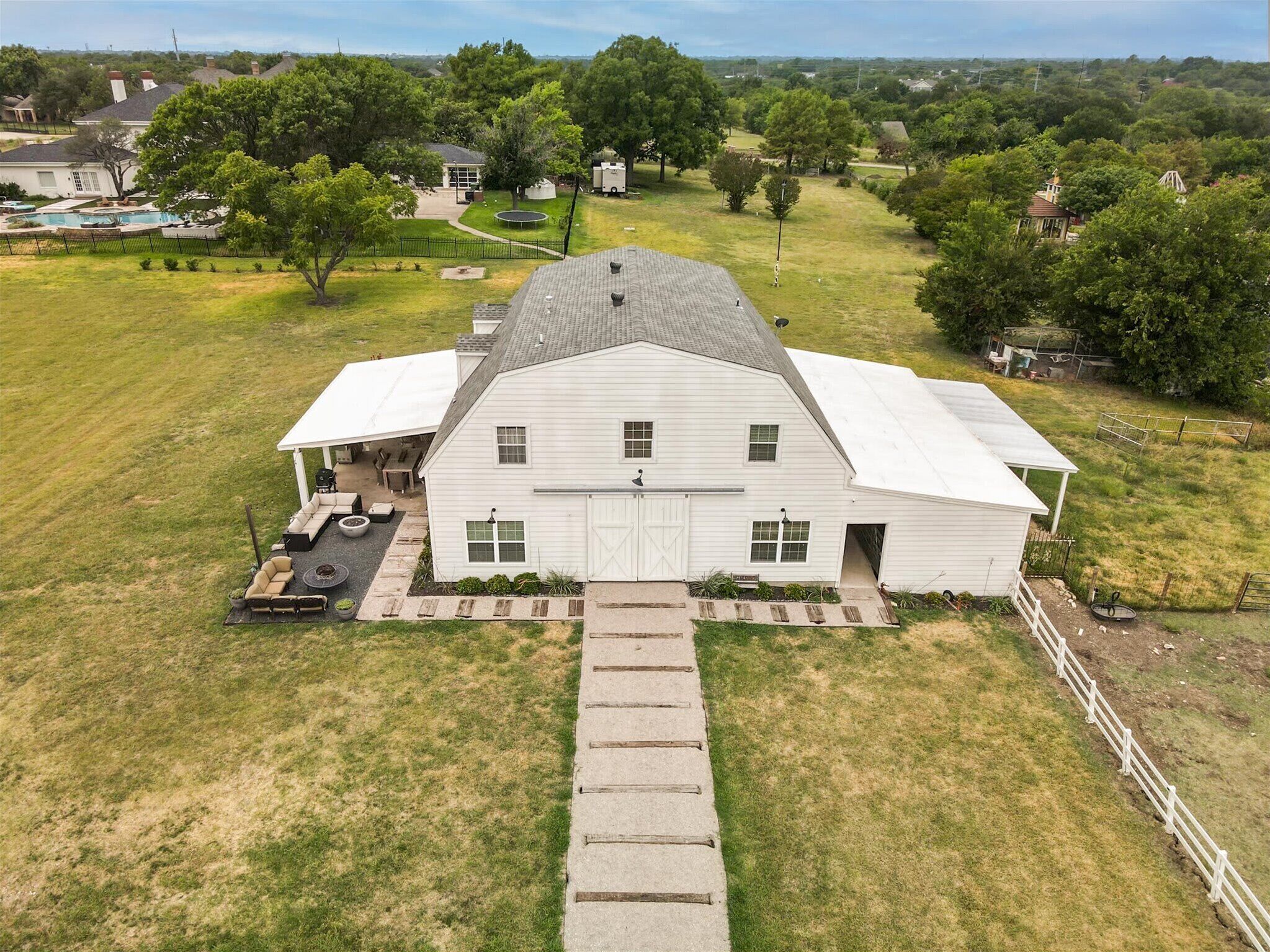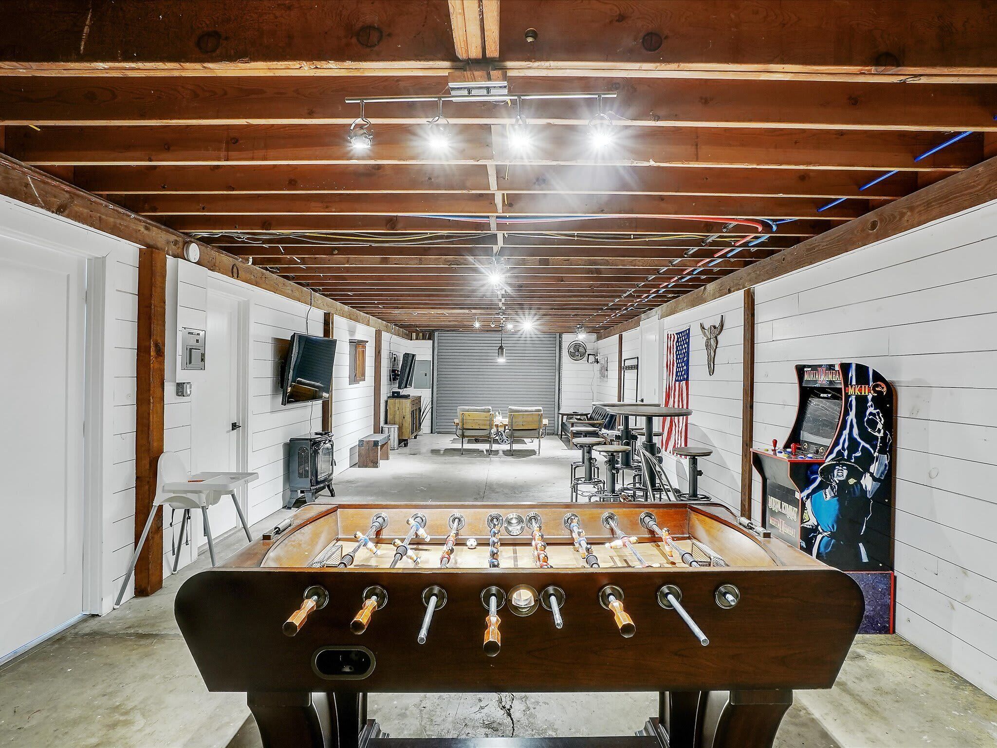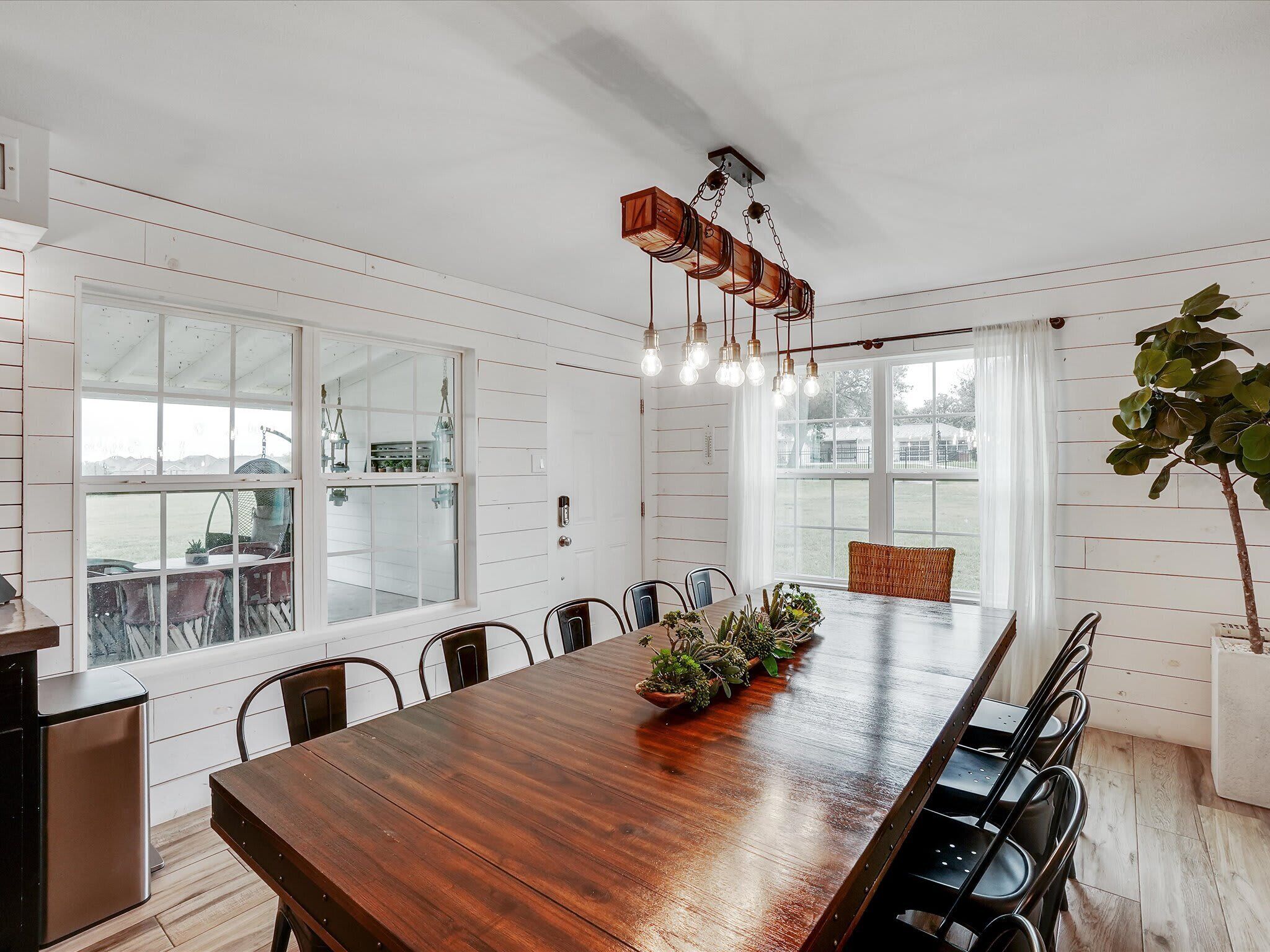 Scenic Barndominium, Hot tub & Separate Suite Summary:Looking for a nice quiet vacation getaway? This is it! Let this rustic charming barn be your home away from home! Featuring 6 bedrooms and 4 bathrooms, this place offers plenty of open space to gather with friends and family. Come experience the indoor/outdoor lifestyle with a patio, fire pit, BBQ grill and hot tub. After all, it’s the little details that make a big difference!✔ 6 bedrooms (sleeps 14)✔ 4 bathrooms✔ Fire pit, grill, hot tub✔ Separate Dwelling✔ Game RoomThe Space:Our home caters to both short term and medium term stays, making it an excellent choice for corporate housing needs. Whether you find yourself temporarily displaced from your home or require accomodations for your team during an extended project in our area, we provide a welcoming and comfortable "home away from home" experience.★ KITCHEN ★You will be amazed by the 2 kitchens. They both look like they walked straight out of Joanna Gaines’ Magnolia vision! Equipped with classic white subway tiles and open shelving for an authentic rustic atmosphere, this open-concept kitchen makes it easy to whip up a southern meal while enjoying time with good company. It’s even got a farm-style double sink! ✔ 2 fully equipped kitchen for all your cooking needs✔ Stainless steel appliances - oven, fridge, freezer, stove, microwave, dishwasher✔ Cooking essentials, place settings, and dining utensils✔ Granite countertops, natural sunlight, and ample counter space★ LIVING AREA ★Modern and chic, this spacious living area was designed for creating great memories with family and friends. Tastefully furnished with artwork that pays homage to the farming lifestyle, this spacious living room has plenty of seating for everyone with not one but two curved sectionals. No need to make anyone sit on the floor!✔ 2 curved sectionals for comfortable seating✔ Coffee tables, lighting, and artwork ✔ Flat-screen TV and high-speed Wi-Fi✔ Open-concept layout with overhead fan✔ Extra living area on the separate dwelling ★ BREAKFAST NOOK ★This part of the house gets plenty of natural sunlight which makes it perfect for serene peaceful mornings. Whether you’re in need of some quiet “me time” with your morning coffee or you live by the “early bird gets the worm” mantra, this kitchen is ready to be your partner in crime!✔ Dedicated breakfast nook ✔ Seating for 6+ guests✔ Plenty of natural sunlight✔ Rustic décor and indoor plants★ DINING ROOM ★ This dinner table is so large that you might have to raise your voice when you ask for the potatoes to be passed to you! There’s nothing quite like a homecooked meal shared amongst some of your favorite people so gather around and enjoy a toast to each other’s company. Away from the distractions of daily life, take the time to enjoy being in the presence of your loved ones. ✔ Dedicated dining room for sit-down meals ✔ Dining table with seating for 12✔ Designer accents for a restaurant-like feel★ BEDROOMS ★With 6 bedrooms to choose from, be sure to check them all out before settling in! Each bedroom offers a little something different so free feel to rock-paper-scissors to see who gets the first pick of the rooms. The 5th bedroom has a comfortable sofa that pulls out into a bed for additional sleeping space – perfect for those who enjoy falling asleep midway through a movie!✔ Master bedroom with king-sized mattress✔ 2 additional bedrooms with queen-sized mattresses✔ A 4th bedroom with a bunk bed with 3 full mattresses✔ A 5th bedroom with a TV and a sofa bed✔ 6th bedroom is a master on the separate dwelling ✔ Can comfortably sleep 14 guests★ BATHROOMS ★We don’t shy away from bold statements in this household! Featuring contrasting geometric tilework in every bathroom, the rustic barndominium theme extends into the bathrooms. Each bathroom has its own unique touch – from dual vanities to designer lighting – but they all include essential toiletries and a soothing space for some quiet “me time”.✔ 4 private bathrooms✔ Glass walk-in standing showers for easy accessibility✔ Shower and bathtub for a nice bubble bath✔ Essential toiletries included ★ OUTSIDE SPACE ★True to our farm house roots, there is plenty of open green space for everyone to enjoy! Let the kiddos roam wild and free as they embrace their youthful imaginations. Meanwhile, you can sit back and enjoy a cool beverage from the comforts of the covered patio. Equipped with everything you need to embrace the indoor/outdoor lifestyle, be sure to enjoy the fire pit, outdoor grill, and hot tub!✔ Covered patio for indoor/outdoor living✔ Outdoor dining table and patio furniture✔ Outdoor grill for easy BBQ meals✔ Fire pit and string lights✔ Hot tub for relaxation★ ENTERTAINMENT ROOM ★Whether you’re looking for a bar-style space to catch the latest game or a more intimate lounge area, make your way to the game room to see what happens on the farm house when the sun goes down. If you’re feeling competitive, feel free to your friends to some friendly foosball or Mortal Kombat!✔ Foosball table✔ Mortal Kombat arcade✔ Bar-style seating with a wall-mounted TV✔ Lounge area with TV and media console★ ADDITIONAL AMENITIES ★✔ Free parking is available to guests. There is plenty of space available on the property. ✔ There is a laundry room with a washer and dryer available for your use. Lastly, we must stress that we do NOT allow parties or large unauthorized gatherings of any sort at our property. We are adamant about only welcoming families and groups who are looking to relax and enjoy the beautiful stunning backyard and the amenities the home has to offer.Please note our occupancy is 14 guests but, by the City of Garland code, the property may not be occupied by more than three persons who are unrelated by blood, adoption or marriage, with exception of children related to an 