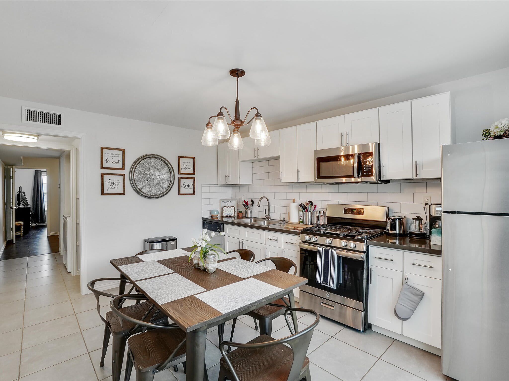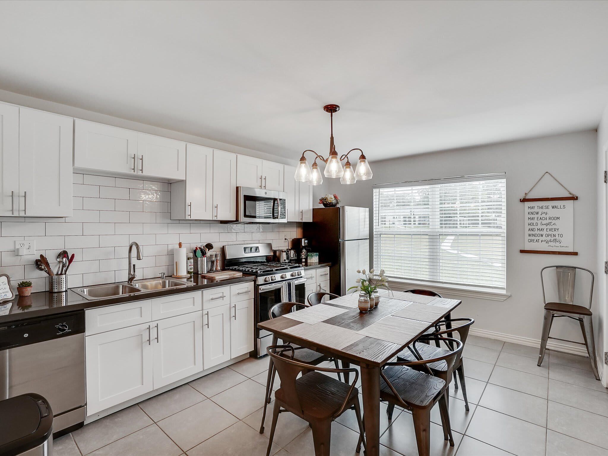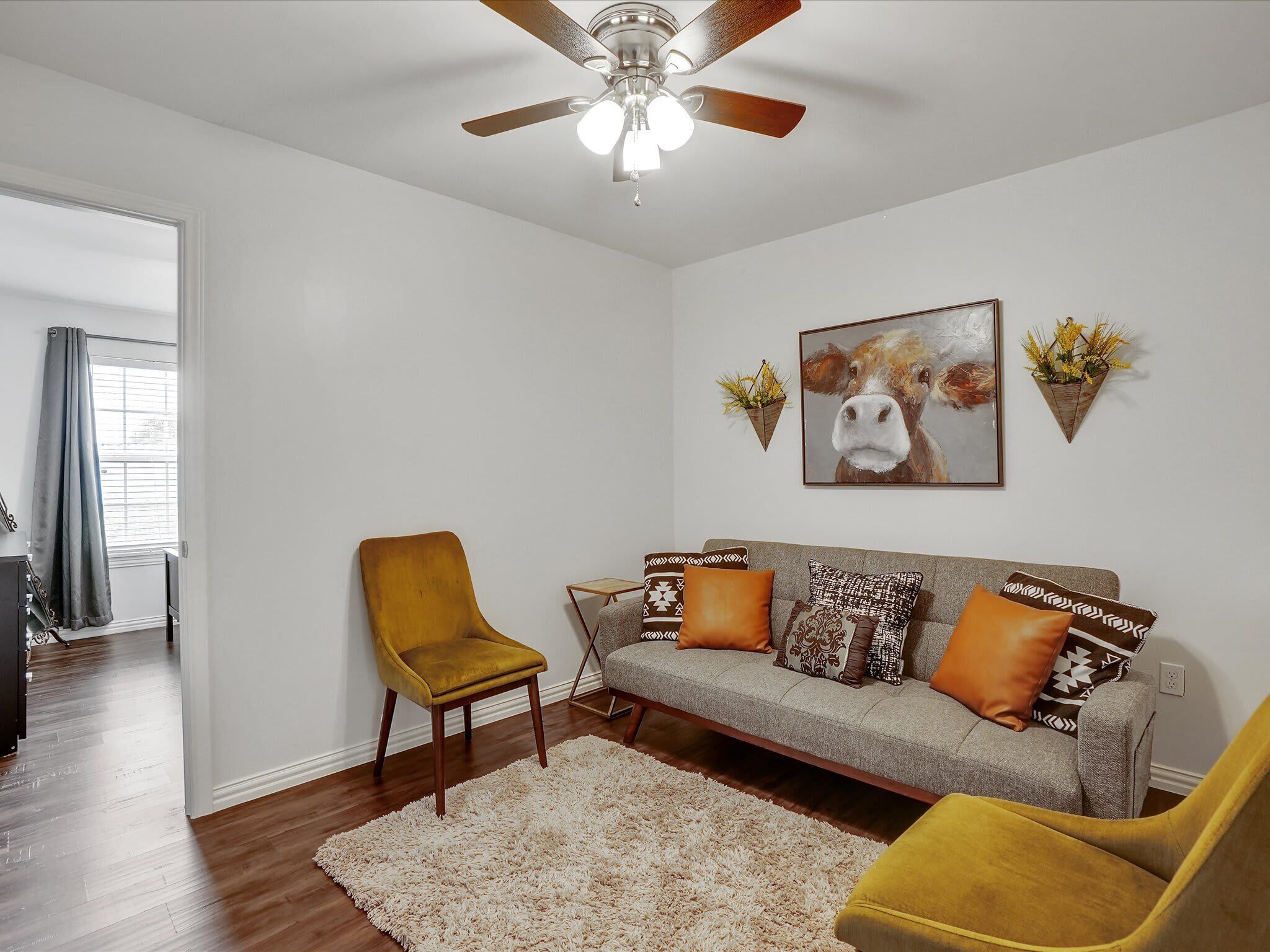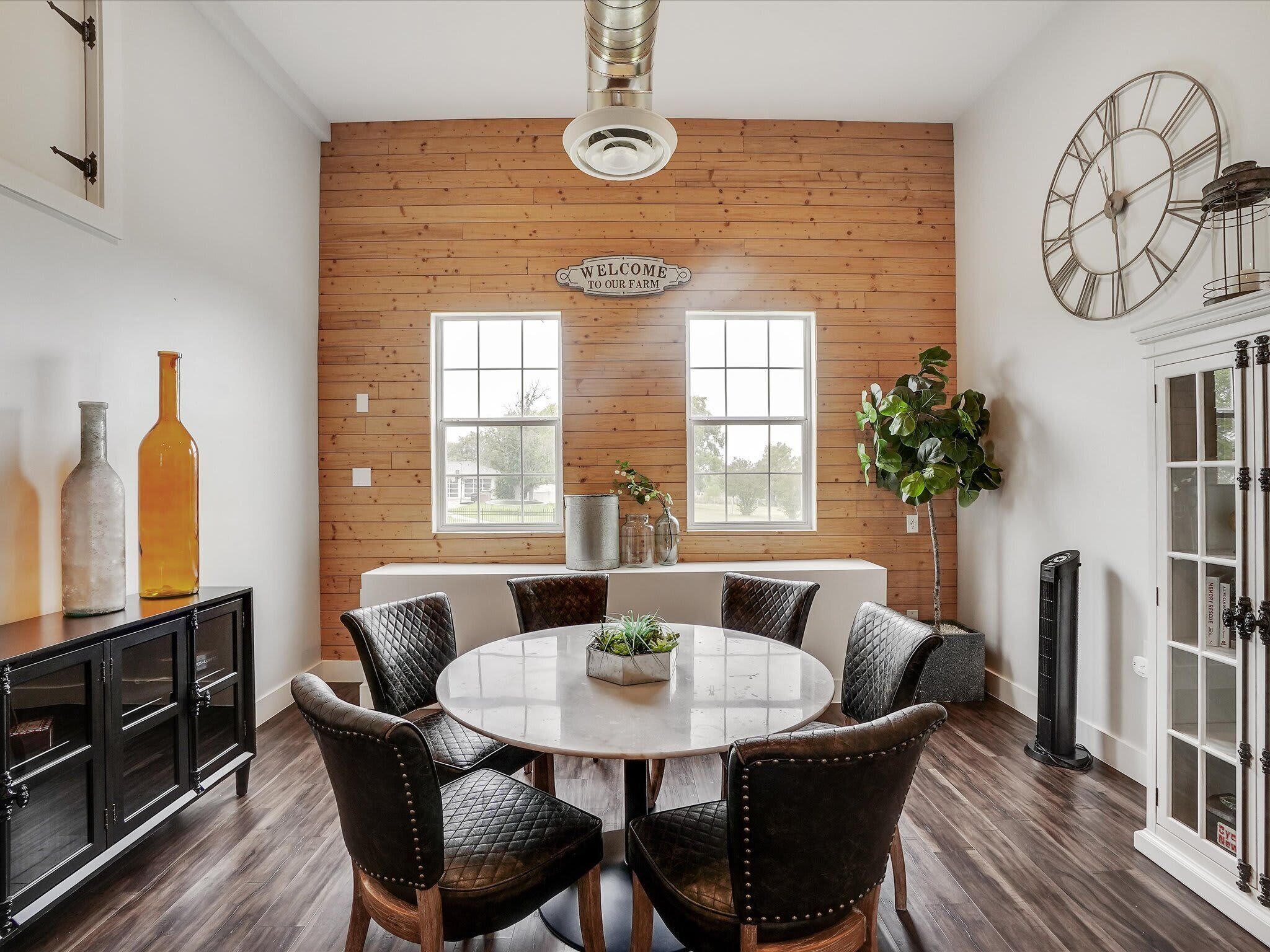 Scenic Barndominium, Hot tub & Separate Suite Summary:Looking for a nice quiet vacation getaway? This is it! Let this rustic charming barn be your home away from home! Featuring 6 bedrooms and 4 bathrooms, this place offers plenty of open space to gather with friends and family. Come experience the indoor/outdoor lifestyle with a patio, fire pit, BBQ grill and hot tub. After all, it’s the little details that make a big difference!✔ 6 bedrooms (sleeps 14)✔ 4 bathrooms✔ Fire pit, grill, hot tub✔ Separate Dwelling✔ Game RoomThe Space:Our home caters to both short term and medium term stays, making it an excellent choice for corporate housing needs. Whether you find yourself temporarily displaced from your home or require accomodations for your team during an extended project in our area, we provide a welcoming and comfortable "home away from home" experience.★ KITCHEN ★You will be amazed by the 2 kitchens. They both look like they walked straight out of Joanna Gaines’ Magnolia vision! Equipped with classic white subway tiles and open shelving for an authentic rustic atmosphere, this open-concept kitchen makes it easy to whip up a southern meal while enjoying time with good company. It’s even got a farm-style double sink! ✔ 2 fully equipped kitchen for all your cooking needs✔ Stainless steel appliances - oven, fridge, freezer, stove, microwave, dishwasher✔ Cooking essentials, place settings, and dining utensils✔ Granite countertops, natural sunlight, and ample counter space★ LIVING AREA ★Modern and chic, this spacious living area was designed for creating great memories with family and friends. Tastefully furnished with artwork that pays homage to the farming lifestyle, this spacious living room has plenty of seating for everyone with not one but two curved sectionals. No need to make anyone sit on the floor!✔ 2 curved sectionals for comfortable seating✔ Coffee tables, lighting, and artwork ✔ Flat-screen TV and high-speed Wi-Fi✔ Open-concept layout with overhead fan✔ Extra living area on the separate dwelling ★ BREAKFAST NOOK ★This part of the house gets plenty of natural sunlight which makes it perfect for serene peaceful mornings. Whether you’re in need of some quiet “me time” with your morning coffee or you live by the “early bird gets the worm” mantra, this kitchen is ready to be your partner in crime!✔ Dedicated breakfast nook ✔ Seating for 6+ guests✔ Plenty of natural sunlight✔ Rustic décor and indoor plants★ DINING ROOM ★ This dinner table is so large that you might have to raise your voice when you ask for the potatoes to be passed to you! There’s nothing quite like a homecooked meal shared amongst some of your favorite people so gather around and enjoy a toast to each other’s company. Away from the distractions of daily life, take the time to enjoy being in the presence of your loved ones. ✔ Dedicated dining room for sit-down meals ✔ Dining table with seating for 12✔ Designer accents for a restaurant-like feel★ BEDROOMS ★With 6 bedrooms to choose from, be sure to check them all out before settling in! Each bedroom offers a little something different so free feel to rock-paper-scissors to see who gets the first pick of the rooms. The 5th bedroom has a comfortable sofa that pulls out into a bed for additional sleeping space – perfect for those who enjoy falling asleep midway through a movie!✔ Master bedroom with king-sized mattress✔ 2 additional bedrooms with queen-sized mattresses✔ A 4th bedroom with a bunk bed with 3 full mattresses✔ A 5th bedroom with a TV and a sofa bed✔ 6th bedroom is a master on the separate dwelling ✔ Can comfortably sleep 14 guests★ BATHROOMS ★We don’t shy away from bold statements in this household! Featuring contrasting geometric tilework in every bathroom, the rustic barndominium theme extends into the bathrooms. Each bathroom has its own unique touch – from dual vanities to designer lighting – but they all include essential toiletries and a soothing space for some quiet “me time”.✔ 4 private bathrooms✔ Glass walk-in standing showers for easy accessibility✔ Shower and bathtub for a nice bubble bath✔ Essential toiletries included ★ OUTSIDE SPACE ★True to our farm house roots, there is plenty of open green space for everyone to enjoy! Let the kiddos roam wild and free as they embrace their youthful imaginations. Meanwhile, you can sit back and enjoy a cool beverage from the comforts of the covered patio. Equipped with everything you need to embrace the indoor/outdoor lifestyle, be sure to enjoy the fire pit, outdoor grill, and hot tub!✔ Covered patio for indoor/outdoor living✔ Outdoor dining table and patio furniture✔ Outdoor grill for easy BBQ meals✔ Fire pit and string lights✔ Hot tub for relaxation★ ENTERTAINMENT ROOM ★Whether you’re looking for a bar-style space to catch the latest game or a more intimate lounge area, make your way to the game room to see what happens on the farm house when the sun goes down. If you’re feeling competitive, feel free to your friends to some friendly foosball or Mortal Kombat!✔ Foosball table✔ Mortal Kombat arcade✔ Bar-style seating with a wall-mounted TV✔ Lounge area with TV and media console★ ADDITIONAL AMENITIES ★✔ Free parking is available to guests. There is plenty of space available on the property. ✔ There is a laundry room with a washer and dryer available for your use. Lastly, we must stress that we do NOT allow parties or large unauthorized gatherings of any sort at our property. We are adamant about only welcoming families and groups who are looking to relax and enjoy the beautiful stunning backyard and the amenities the home has to offer.Please note our occupancy is 14 guests but, by the City of Garland code, the property may not be occupied by more than three persons who are unrelated by blood, adoption or marriage, with exception of children related to an 
