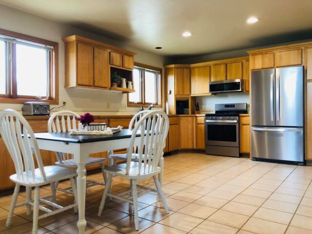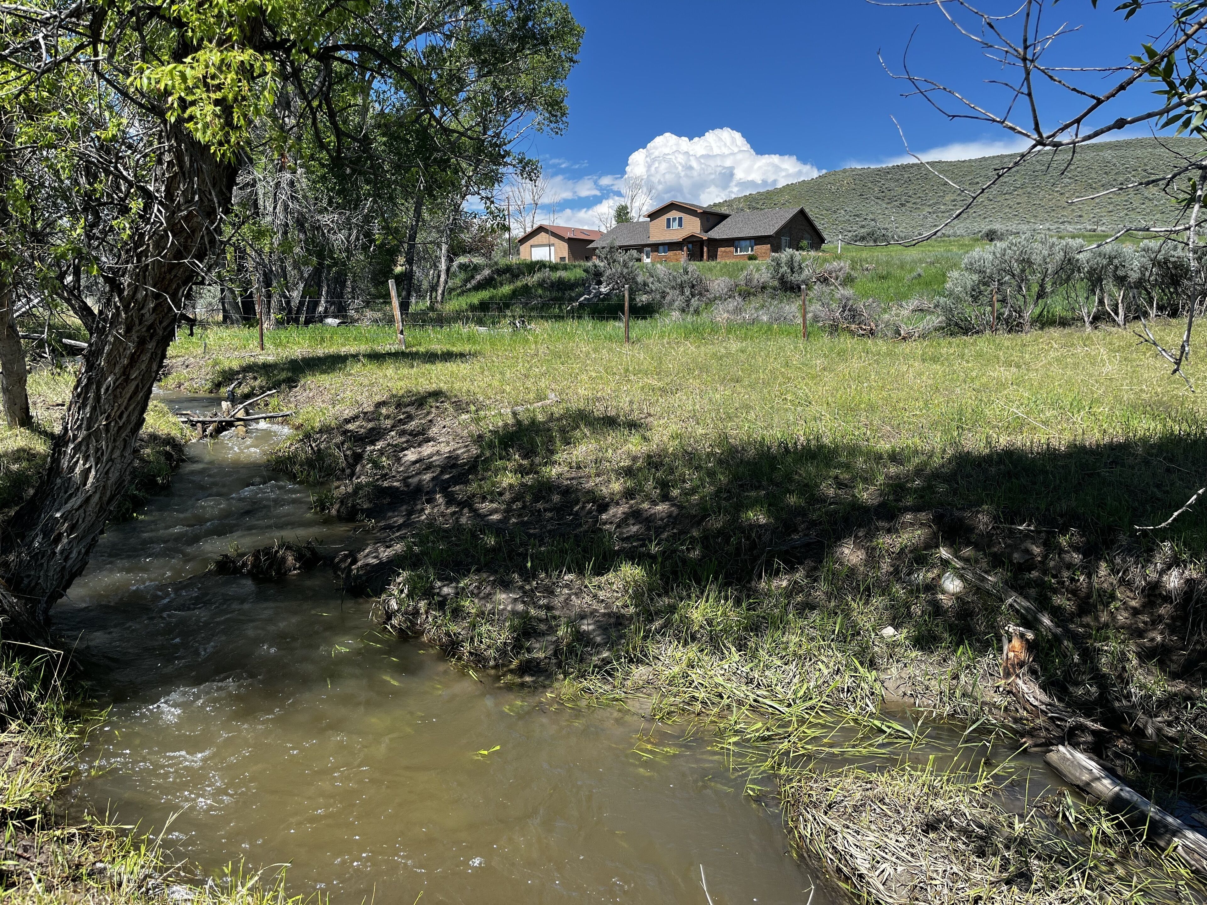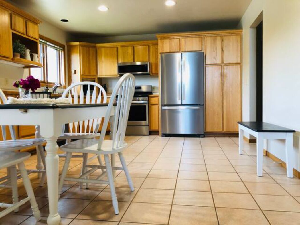 Meeteetse Country Home and Hunters Retreat This attractive and spacious home on 4 1/2 acres overlooks Long Hollow Creek and is conveniently located between Cody and Meeteetse. 2200 square feet of living space. Two master bedrooms with in-suite bathrooms and comfortable queen beds. The third bedroom has two twin beds. There's also a pullout sofa in the family room. Large, open kitchen. WiFi, Roku and Apple TV.Enjoy the amazing views in every direction. Relax to the sound and solitude of Long Hollow creek running just beyond the front door of the home, and grab a camp chair in the evening and relax under the star filled Wyoming sky!Peaceful location with lots of privacy. Whether you're exploring the Meeteetse, Cody or Yellowstone area, or on a hunting adventure, this is the perfect home! The large rooms and open areas offer plenty of space for everyone. Ceiling fans in each room and Air Conditioning in the upstairs bedroom.The location also provides easy access to all of the surrounding fall and winter hunt areas. When not out exploring, enjoy the BBQ grill, large picnic table and even a game of Corn hole!Frigidaire 13 cu. ft upright freezer and large table located in garage for hunters game processing needs.4.99 Stars on the other vacation rental platform with 120 reviews!