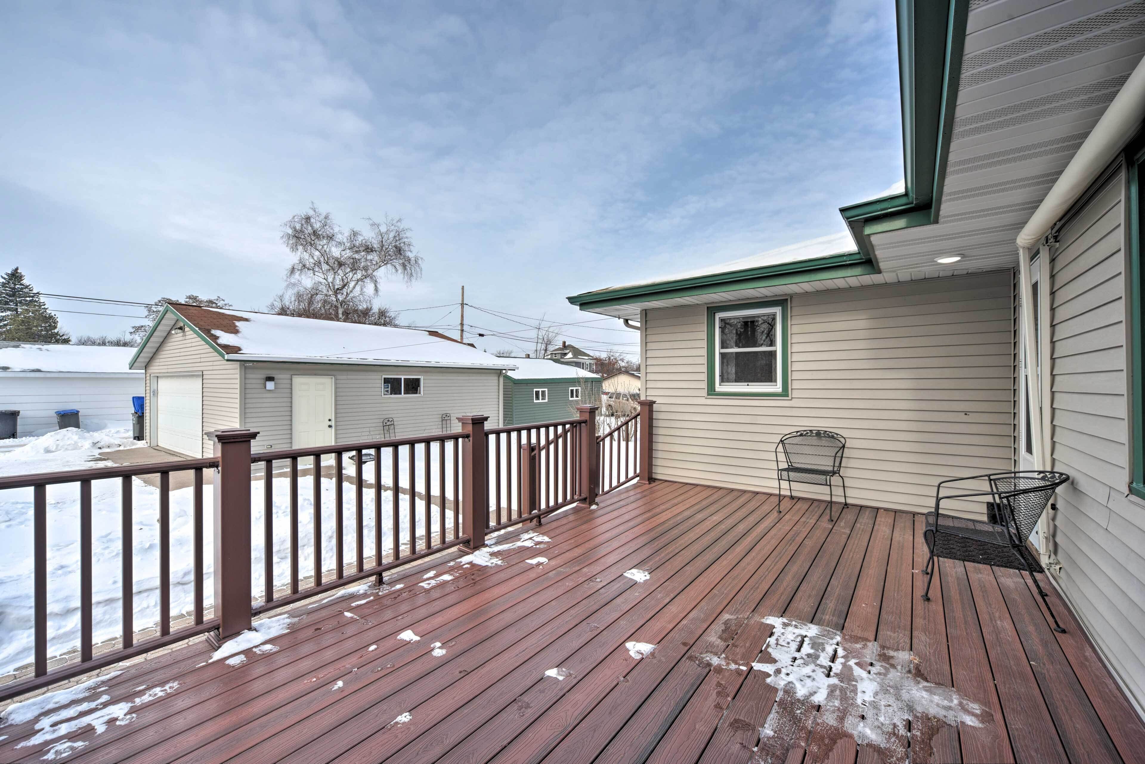 Pet-Friendly Retreat ~ 1 Mi to St Louis River! Endless opportunities for outdoor adventure await with this 3-bedroom, 1.5-bathroom Superior vacation rental as your home base! Featuring a fully equipped kitchen, idyllic furnishings and decor, and a location within walking distance of nearby parks and trails, this cozy getaway will provide you with the rest and relaxation you’ve been hoping for. Spend days boating or fishing out on Lake Superior, walking along the Duluth Lakewalk, or attending an event at Bayfront Festival Park!-- THE PROPERTY --Near Lake Superior | Keyless Entry | 1,650 Sq FtPerfect for a group of outdoor enthusiasts or a relaxing family getaway, this peaceful Superior home offers guests easy access to Lake Superior and the area’s top attractions without sacrificing the essential comforts!Bedroom 1: Queen Bed | Bedroom 2: Queen Bed | Bedroom 3: Queen Bed | Additional Sleeping: Pack ‘n PlayINDOOR LIVING: Smart TV, Bluetooth speaker system, ceiling fans, dining tableKITCHEN: Fully equipped, blender, coffee maker, cooking utensils, Crockpot, dishware & flatware, ice maker, microwave, spices, toaster, water filterOUTDOOR LIVING: Deck w/ seating, backyard areaGENERAL: Free WiFi, central air conditioning, hair dryer, hangers, in-unit laundry machines, iron/board, linens/towels, trash bags/paper towelsFAQ: 4 steps to enter, pet fee (paid pre-trip), 2 Ring Doorbell camera (facing front & back entryways)PARKING: Driveway (2 vehicles), street parking-- THE LOCATION --OPT OUTSIDE: Billings Park (1.1 miles), Arrowhead Public Boat Ramp (1.3 miles), Minnesota Point Pine Forest Scientific and Natural Area (4.3 miles), Superior Municipal Forest (4.6 miles), Lakewalk (7.6 miles), Spirit Mountain Recreation Area (7.8 miles), 12th Street Beach (8.1 miles), Schafer Beach (9.8 miles), Wisconsin Point (11.4 miles), Park Point Recreation Area (11.5 miles), Superior Entry Observation Area (12.0 miles), Pattison State Park (13.5 miles), Kitchi Gammi Park (13.6 miles), Amnicon Falls State Park (15.5 miles), Jay Cooke State Park (17.7 miles), Bear Beach State Natural Area (26.2 miles)THINGS TO DO: Lake Superior Zoo (5.5 miles), The St. Louis County Depot (6.7 miles), Great Lakes Aquarium (7.0 miles), North Shore Scenic Railroad (7.0 miles), Bayfront Festival Park (7.3 miles), Enger Park (7.4 miles), Adventure Zone Canal Park (7.5 miles), Aerial Lift Bridge (7.6 miles), Leif Erikson Park (8.2 miles), Duluth Rose Garden (9.9 miles), Glensheen Mansion (10.2 miles), Hartley Nature Center (12.5 miles)MUSEUMS: Richard I. Bong Veterans Historical Center (3.2 miles), Fairlawn Mansion & Museum (3.6 miles), S S Meteor Maritime Museum (3.7 miles), Lake Superior Estuarium (3.7 miles), Duluth Children’s Museum (5.5 miles), Historic Union Depot (6.7 miles), Lake Superior Railroad Museum (7.0 miles), Lake Superior Maritime Visitor Center (7.7 miles)AIRPORT: Duluth International Airport (11.1 miles)-- REST EASY WITH US --Evolve makes it easy to find and book properties you’ll never want to leave. You can relax knowing that our properties will always be ready for you and that we’ll answer the phone 24/7. Even better, if anything is off about your stay, we’ll make it right. You can count on our homes and our people to make you feel welcome--because we know what vacation means to you.-- POLICIES --- No smoking- Pet friendly w/ $75 fee (+ fees & taxes)- No events, parties, or large gatherings- Must be at least 28 years old to book- Additional fees and taxes may apply- Photo ID may be required upon check-in- NOTE: The property requires 4 steps to enter and may be difficult for guests with limited mobility- NOTE: Your safety matters. This property features 2 Ring Doorbell devices with exterior security cameras: 1 camera is located at the front door facing the front entrance to the home and 1 camera is located at the back door facing the deck. The cameras do not look into any interior spaces. The cameras actively record video and sound when motion is detected by the devices