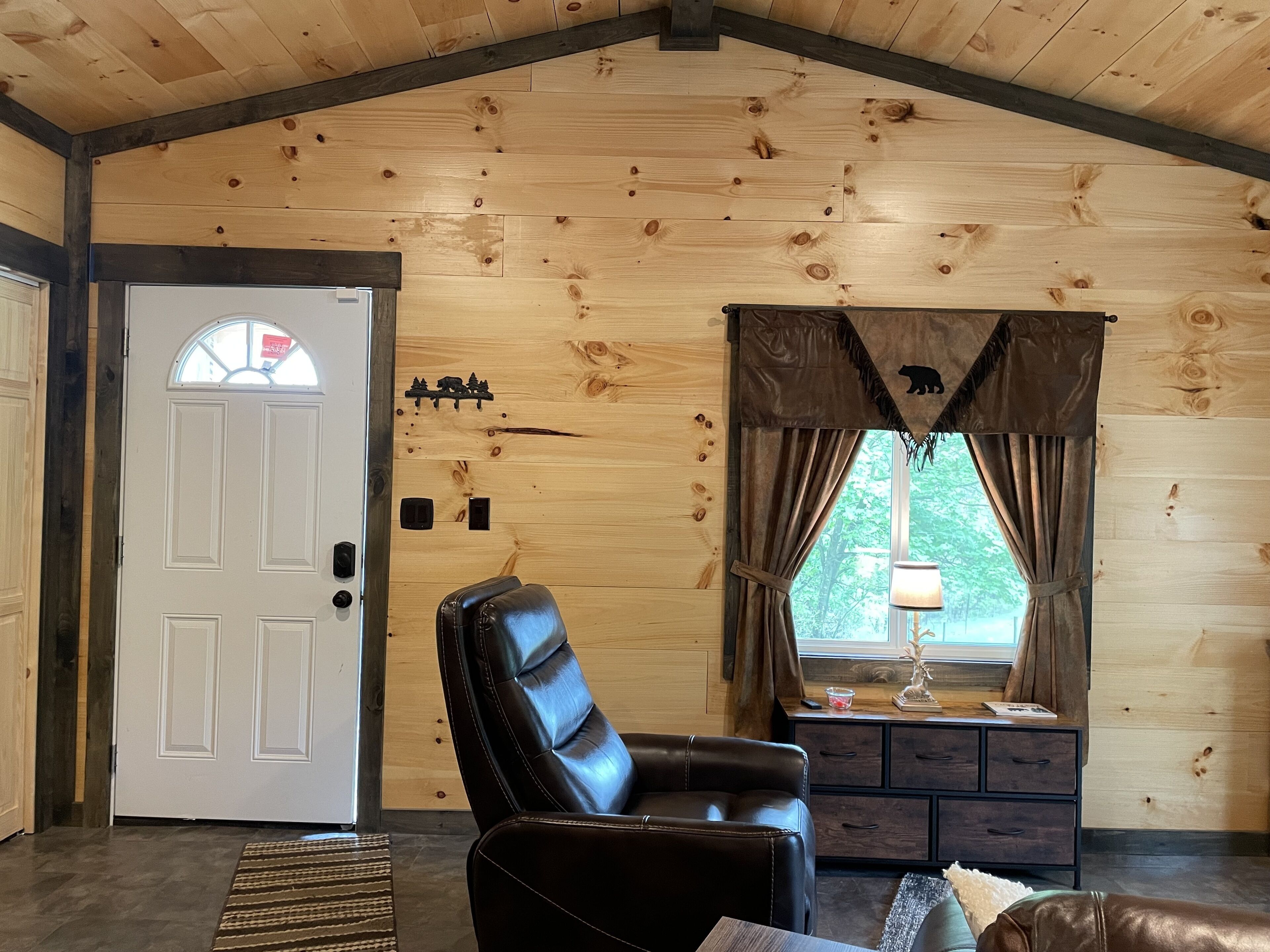 LILY PAD: Cozy Cabin with Unique Charm overlooking small pond on our property. Cozy cabin with open floor plan overlooking a small pond on our property. Covered porch & fire pit. Views of woods & farm fields. Close to several restaurants, parks, walking trails & Trax Farms.Trolley to Pittsburgh two minutes away.Also consider “Mojo’s Loft”, our pet-friendly rental.