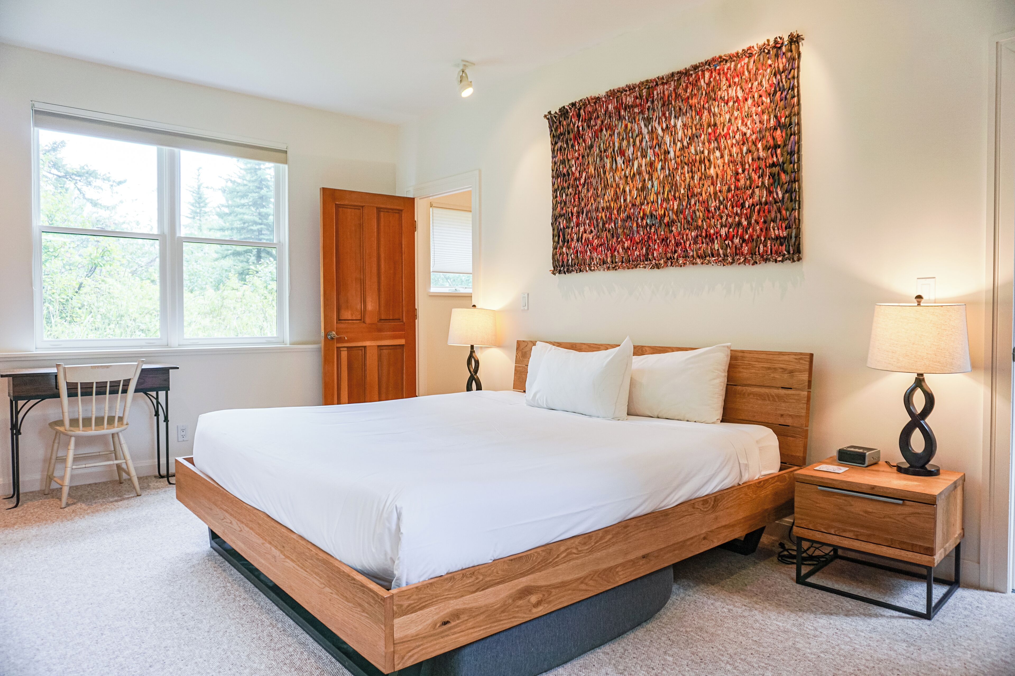 JHRL - McBean House, Contemporary 4-bedroom Home - 5 Minute walk to Base, private Hot Tub Bedding: 1 King, 1 King, 1 Queen plus a twin bed, 2 Full beds, 1 Queen hide-a-bedApproximately 3,200 square feetContact free, Remote Check-InAmenities include:• 2 Master suites.• 2 TVs (55” and 48”), 2 DVD players• High speed internet• Private hot tub• Washer and dryer• Heated 2 car garage (available winter only)• Walk to slopes• 4 pair boot and glove dryerEnjoy the lofty experience of living atop an elevated lot in Teton Village. Sweeping views of the mountains and valley paired with bright, contemporary interior design make McBean House a memorable place to vacation. This 3,200-square-foot home sits within walking distance of Jackson Hole Mountain Resort lifts.A foyer with slate floor greets guests, and leads into a hallway lined with two bedrooms, a full bathroom and a sitting area replete with a 55” wall-mounted Smart TV and DVD player, and a cozy couch and chairs for viewing. Further along, past a stairway to the second level, a master bedroom suite features a king bed, sitting area, large closets and a full en suite bathroom. Adjacent to this master suite is access to the secluded large hot tub. A utility room with a washer and dryer is also located on the first floor.From the foyer a set of hardwood stairs leads to the second level – an open floor plan incorporating the kitchen, dining area, great room and powder room. Picture windows offer spectacular views of the surrounding mountains and valley. A deck extends the great room on both the eastern and western side of the house. The dining area seats 10 and the gourmet kitchen boasts modern top-of-the-line appliances and granite countertops – a perfect site for serious chefs and entertaining.A second master suite connects to the living room through a small hallway with a King bed, sitting area, large closets and a full en suite bathroom.Additional amenities include a heated two-car garage, high-speed Internet and 4 pair boot and glove dryer.Please note: The owner may be present in a separate apartment above the garage.*Gatherings greater than 20 people are not permitted in this property.Mountain weather is variable and unpredictable. Resort conditions and ski access may be weather and snow dependent.